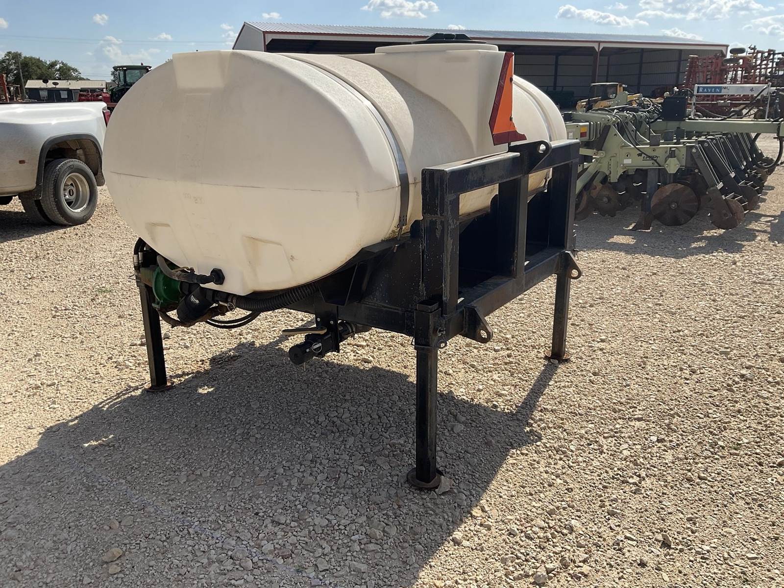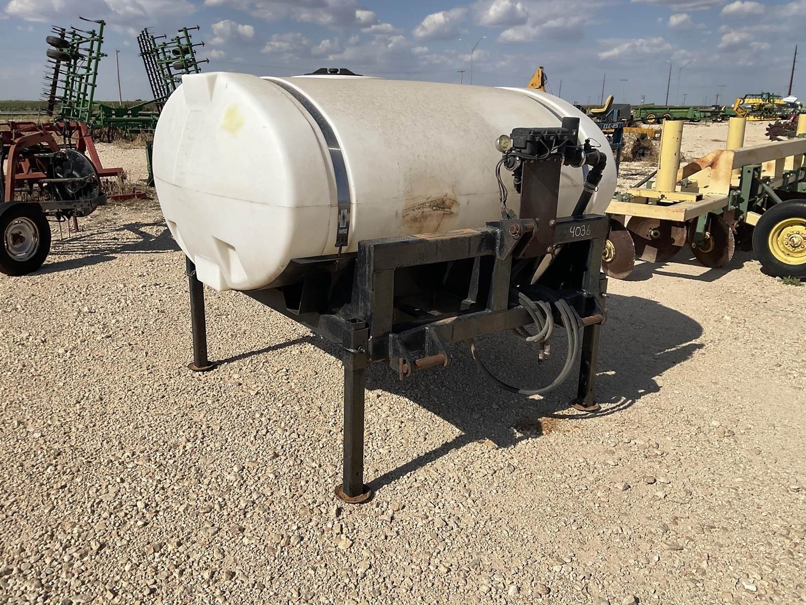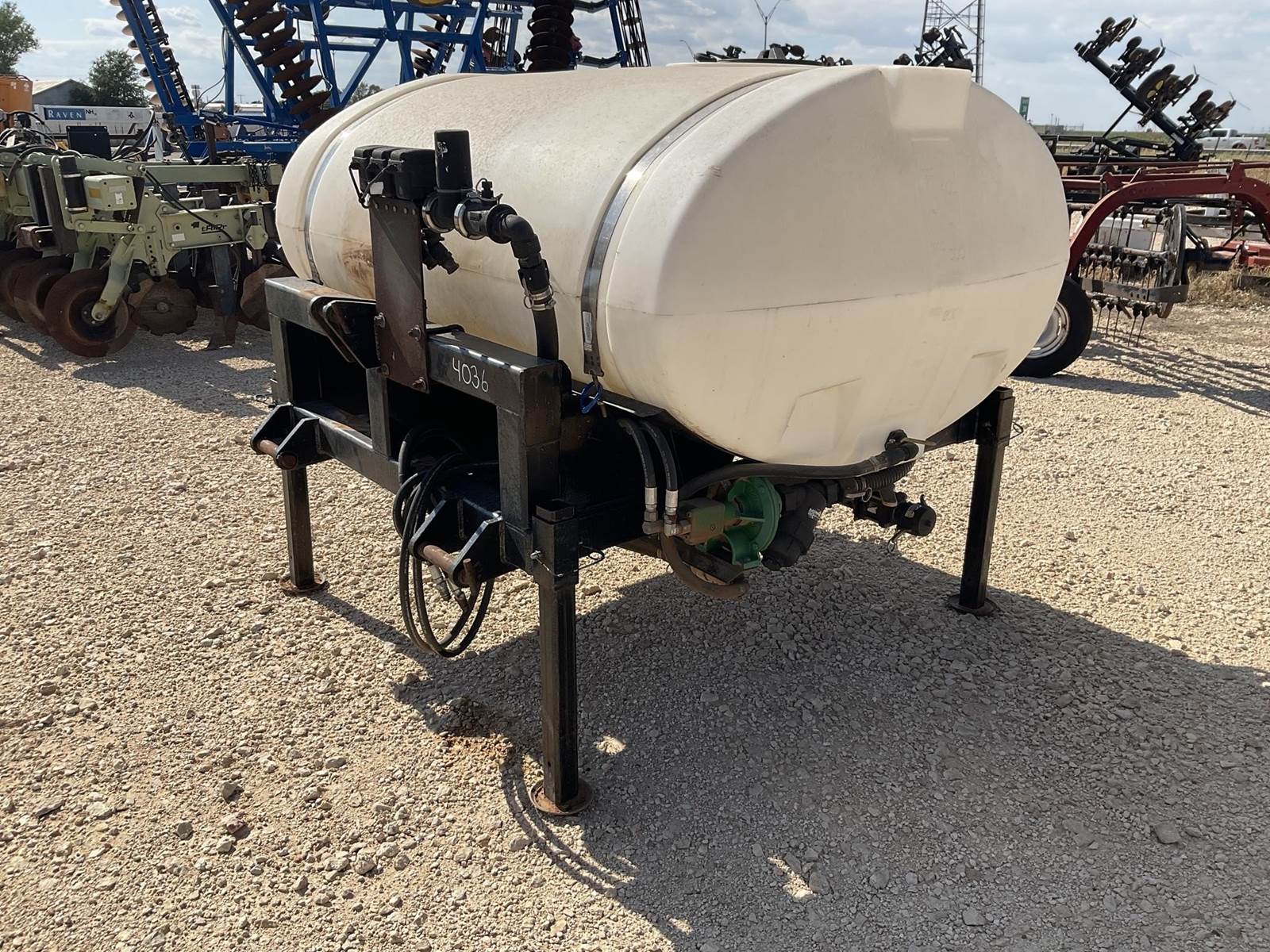 Wylie 3-pt 500 gallon sprayer tank. Has an ace hydraulic pump on it. Tank looks to be in good shape. You can hook a spray boom or another 3-pt hitch to the mount on the back side of the frame. Nice 500 gallon tank!