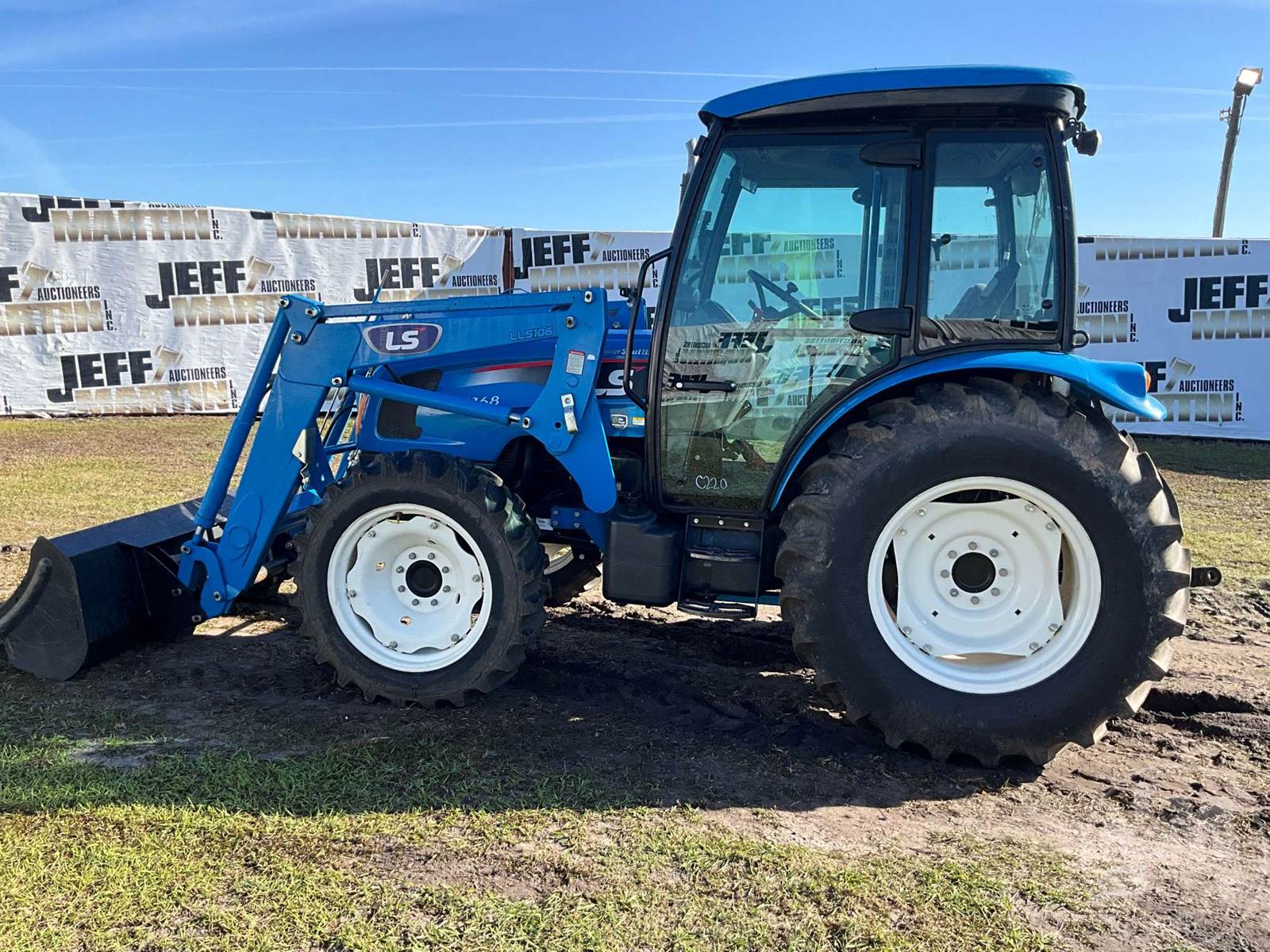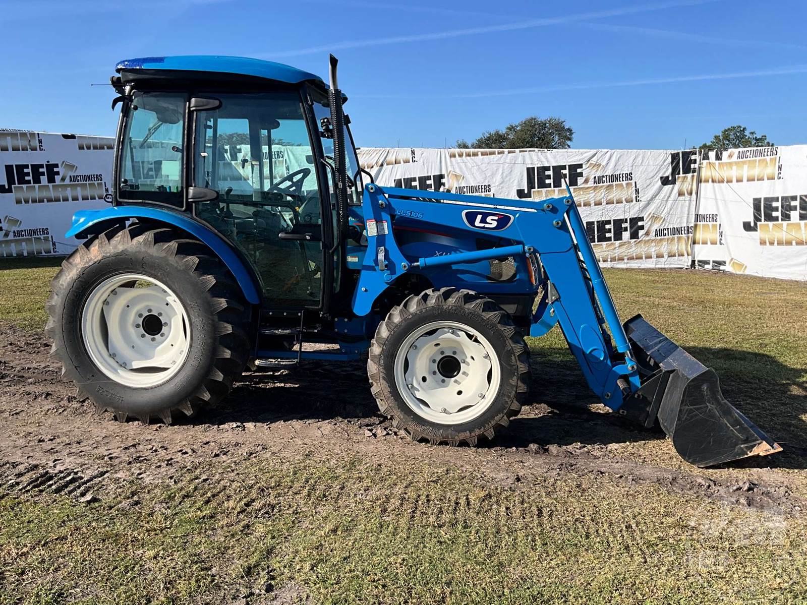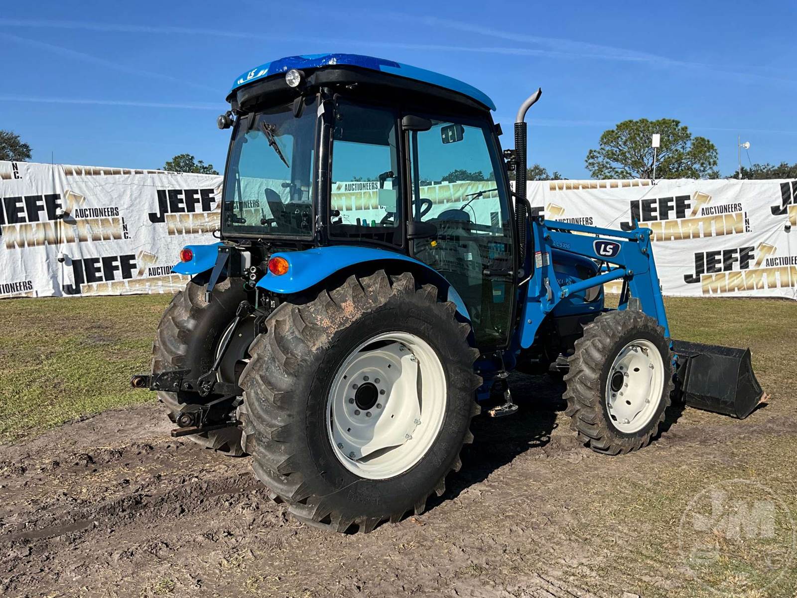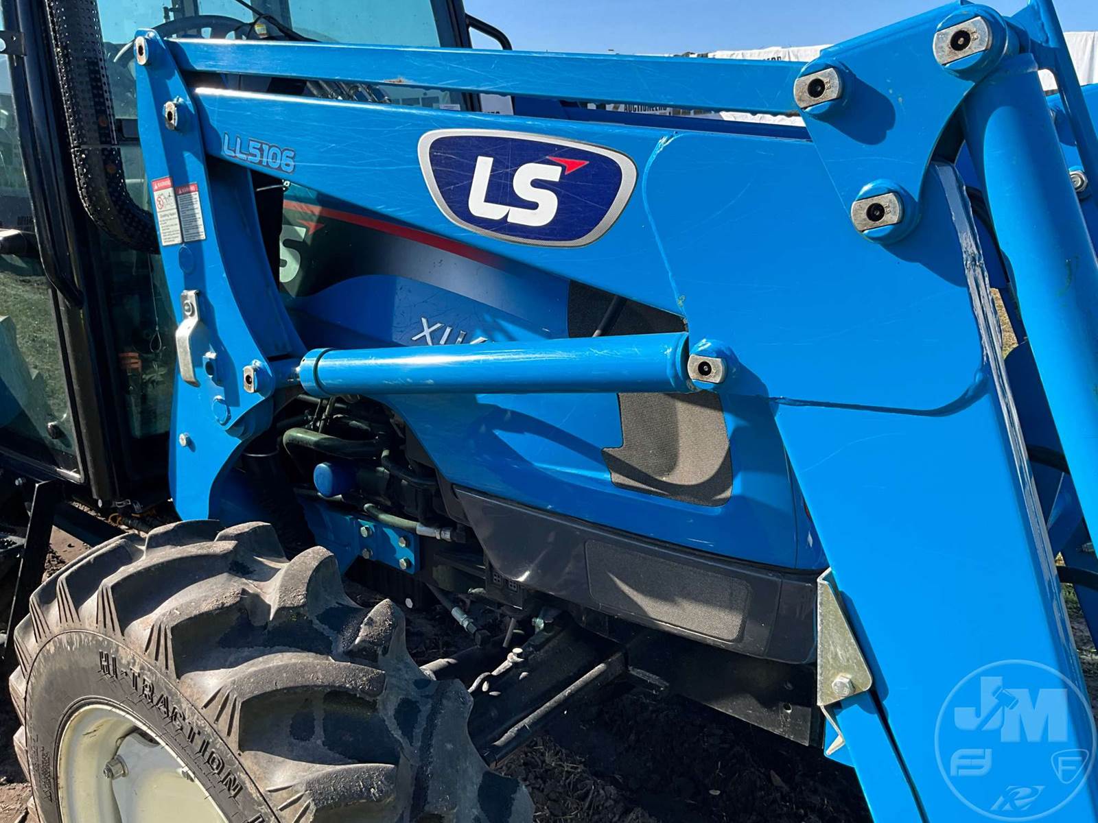 4X4 TRACTOR W/ LOADER, CAB, A/C, RADIO, BLUETOOTH RADIO, DIESEL ENGINE, 3 PT HITCH, LS MTRON LTD, LL5106, LOADER, GP BKT, 540 RPM PTO, 3 REMOTES, 16.9.28 REAR TIRES, 9.5-24 FRONT TIRES, HOUR METER READS: 402