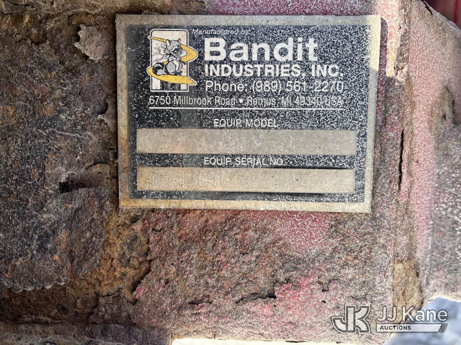 XXXX Bandit Industries 200XP Portable Chipper, 4-cyl gas, trl mtd (Runs, operational Condition Unknown) (Reads 1,338 hours) This is a Titled Item NOTE: This unit is being sold AS IS/WHERE IS via Timed Auction and is located in Smock, PA. Inspection & preview days for this unit are the 2 business days prior to the first day of items closing for this auction, item is located at 1000 Franklin Dr Smock, PA 15480 and hours of operations are 7:00 am to 3:30 pm. For pre-sale questions, please contact Alaina White @ (724) 562-2575 or Alaina.White@JJKane.com. (Buyer is responsible for removal. Assistance by consignor or JJ Kane Auctions is not assured.)
