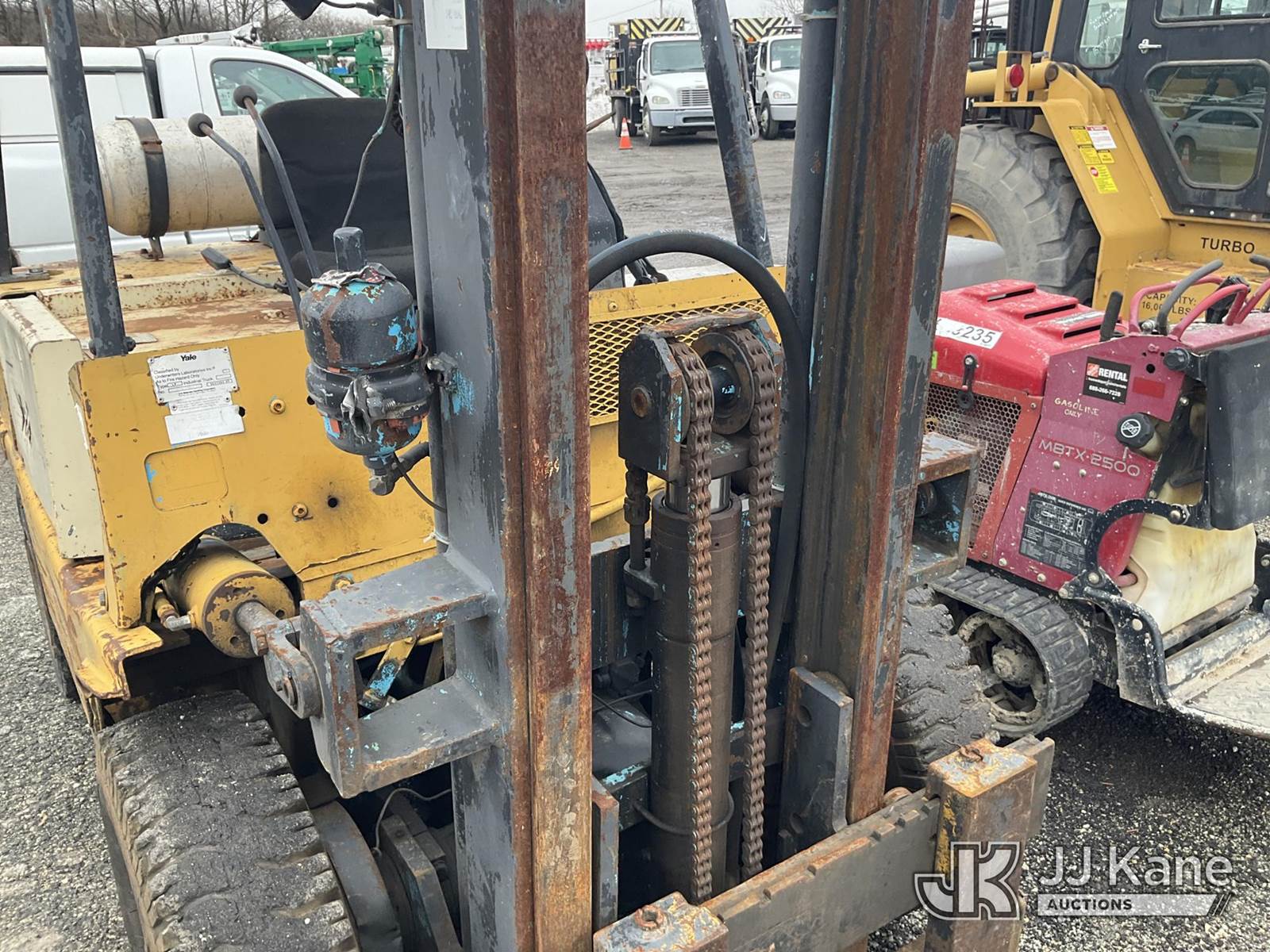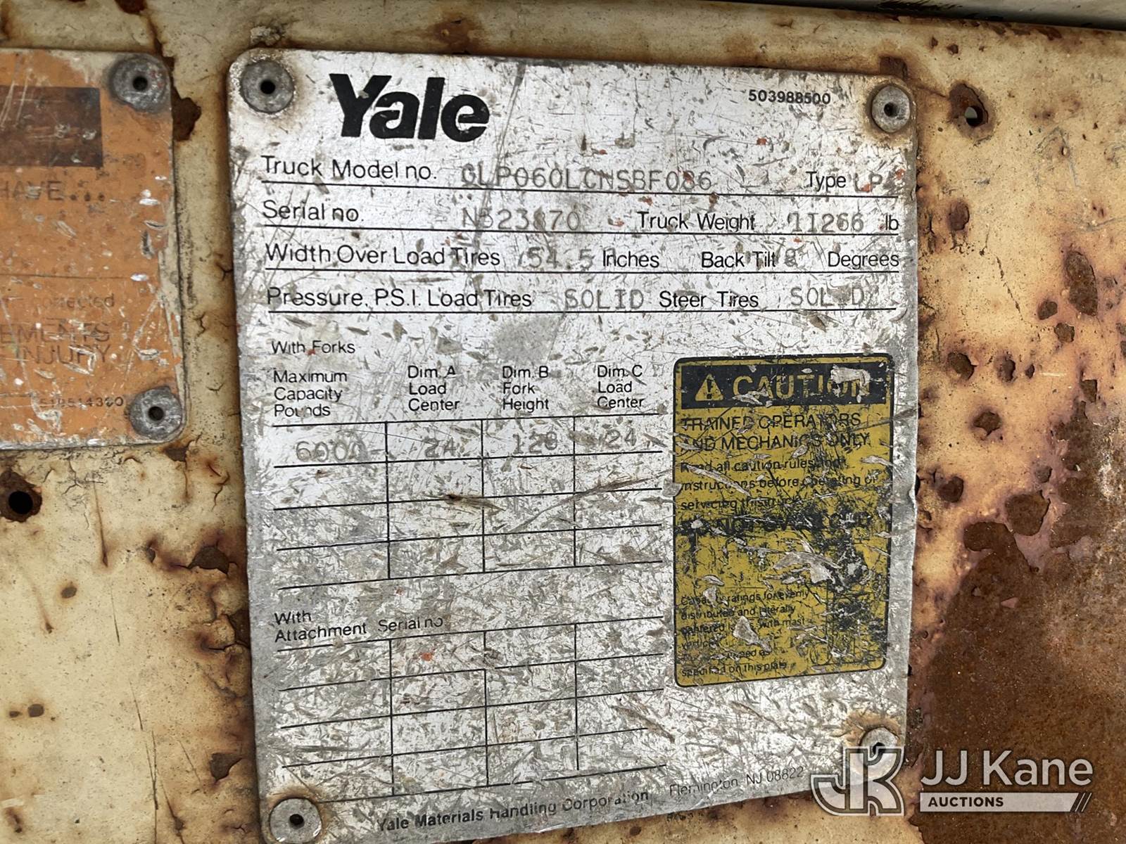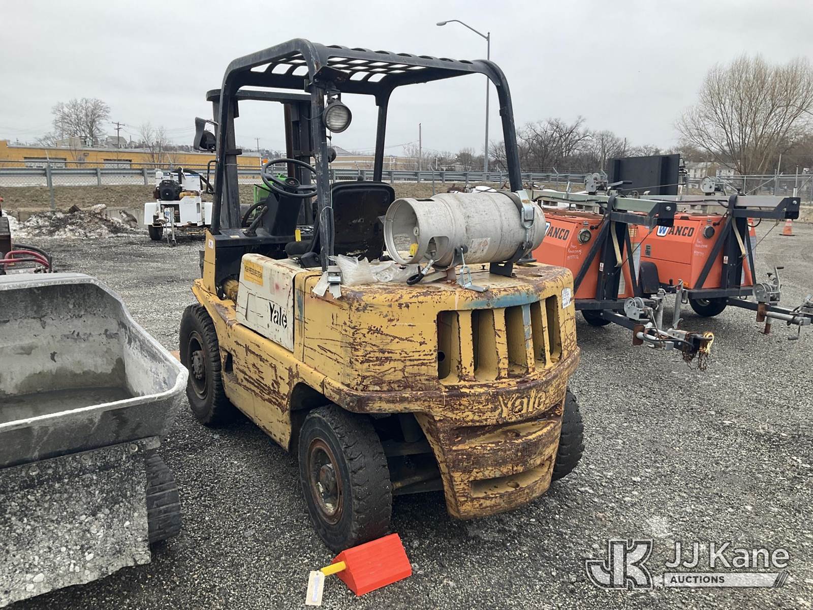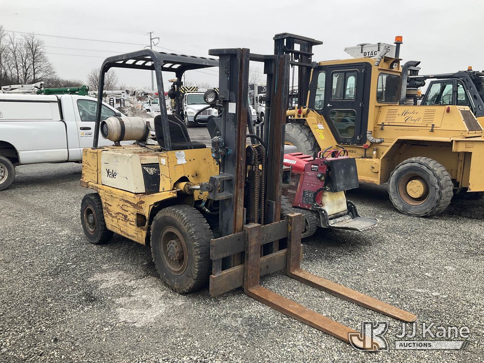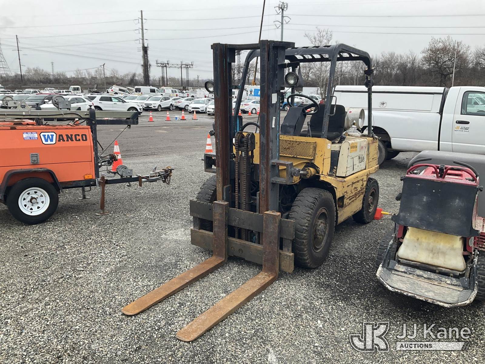 Yale GLP060 6000lb Pneumatic Tired Forklift, s/n N523870, 4-cyl, LPG, Shuttle, with 48in Forks, ROPS, (Runs & Shuts Off, Regulator Freezes Up, Jump To Start, Buyer Must Load) (Reads 354 hours) NOTE: This unit is being sold AS IS/WHERE IS via Timed Auction and is located in Plymouth Meeting, PA. Inspection & preview days for this unit are the 2 business days prior to the first day of items closing for this auction, item is located at 1402 Conshohocken Rd Plymouth Meeting, PA 19462 and hours of operations are 8a-4p. For pre-sale questions, please contact Bruce Thomas @ (267) 887-0392 or bruce.thomas.jr@jjkane.com. (Buyer is responsible for removal. Assistance by consignor or JJ Kane Auctions is not assured.)
