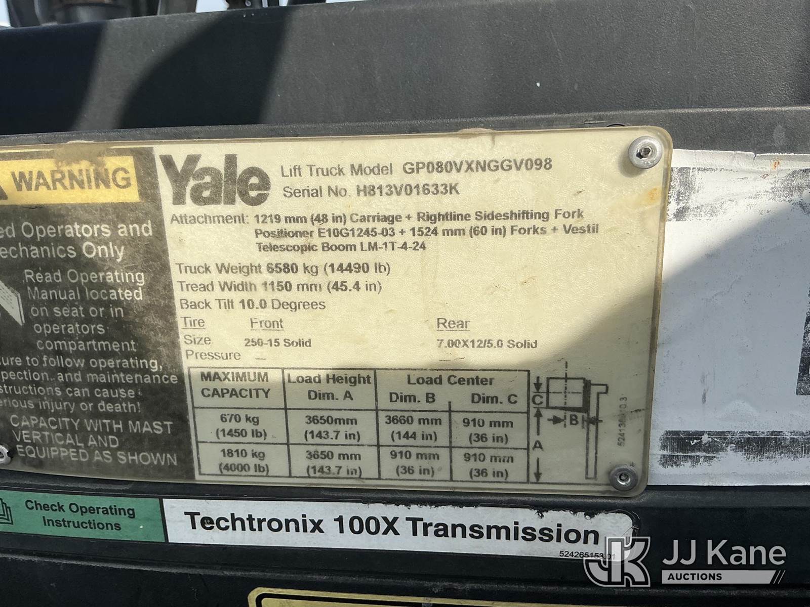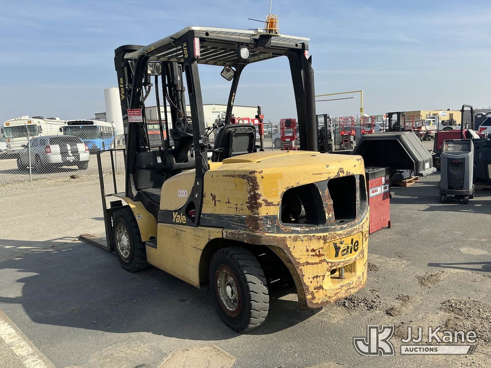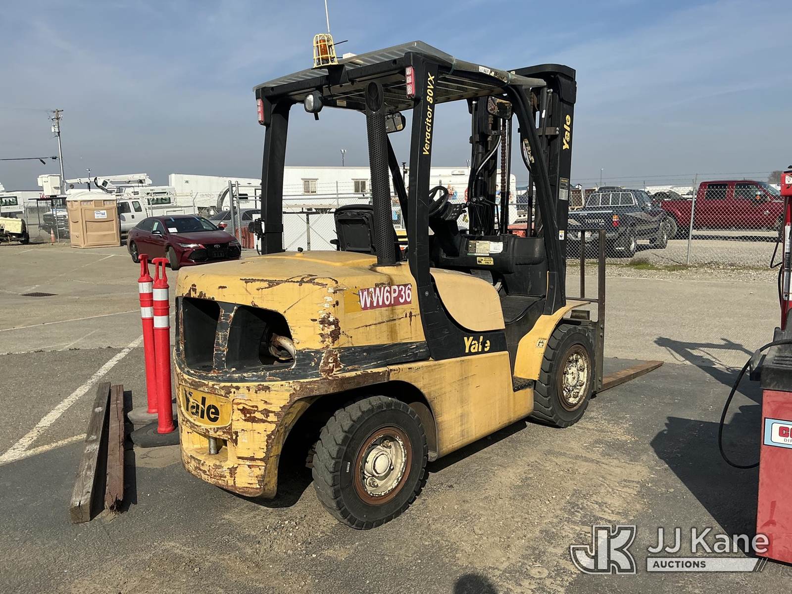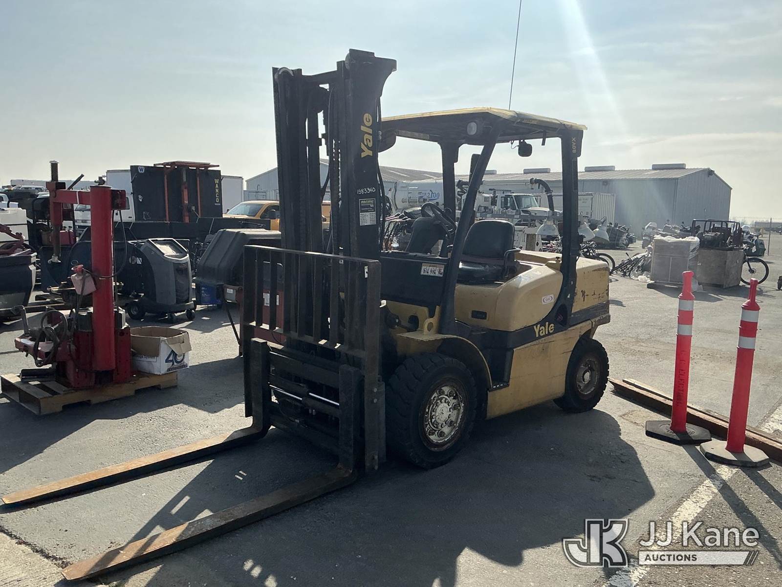 Yale Veracitor 80VX Solid Tired Forklift, s/n H813V01633K, 4-cyl, Gas, Shuttle, with 4000lb Capacity, 5ft Forks, 143in 2 Stage Mast, Hyd Open/Close Forks, Side Shift & ROPS, (Non Running, Will Not Crank) (Reads 7,901 hours) NOTE: This unit is being sold AS IS/WHERE IS via Timed Auction and is located in Dixon, CA. Inspection & preview days for this unit are the 2 business days prior to the first day of items closing for this auction, item is located at 8668 Sparling Ln Dixon, CA 95620 and hours of operations are 8a-4p. For pre-sale questions, please contact JJ Kane Staff at (707) 678-8060 (dixon@jjkane.com). Dealer License Number 45696. (Buyer is responsible for removal. Assistance by consignor or JJ Kane Auctions is not assured.)